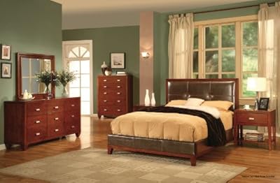 Item(s) Included : Queen Leather Low Profile Bed, Nightstand, Dresser w/ Mirror. The sleek style of this collections case goods are perfect for any modern bedroom. Crafted from eastern ash and coming in a Mocha finish, this collection features Crafted top drawers, english dovetailed joints both front and back for sturdiness, solid wood frames, and ball-bearing glides on all drawers