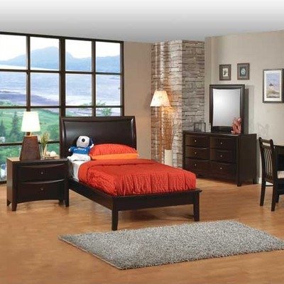 400181Series Size: Full Features: -Contemporary style.-Wood veneers and solids.-Chamfered trim, clean lines, tapered feet.-Antique brass or brushed nickel knobs.-Smooth veneered tops with straight edges. Includes: -Includes platform bed and one nightstand - additonal matching pieces available. Color/Finish: -Warm brown and deep cappuccino finishes. Dimensions: -Bed: 45'' H x 60'' W x 84'' D.-Nightstand: 25'' H x 28'' W x 17.5'' D.-Dresser: 32.5'' H x 52'' W x 16.5'' D.-Mirror: 36'' H x 31.63'' W x 1'' D.-Chest: 49'' H x 35.88'' W x 16.5'' D.-Desk: 30.75'' H x 49'' W x 23'' D.-Hutch: 42.5'' H x 45.5'' W x 9'' D.
